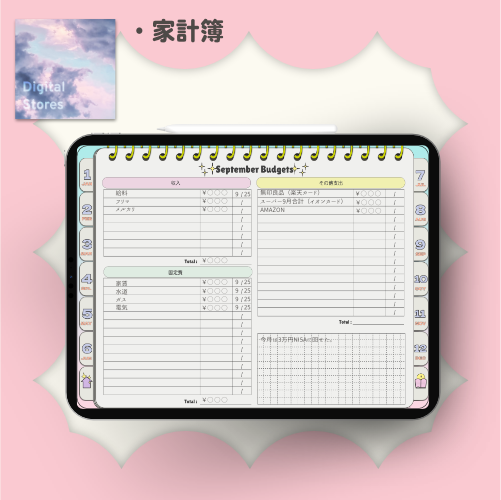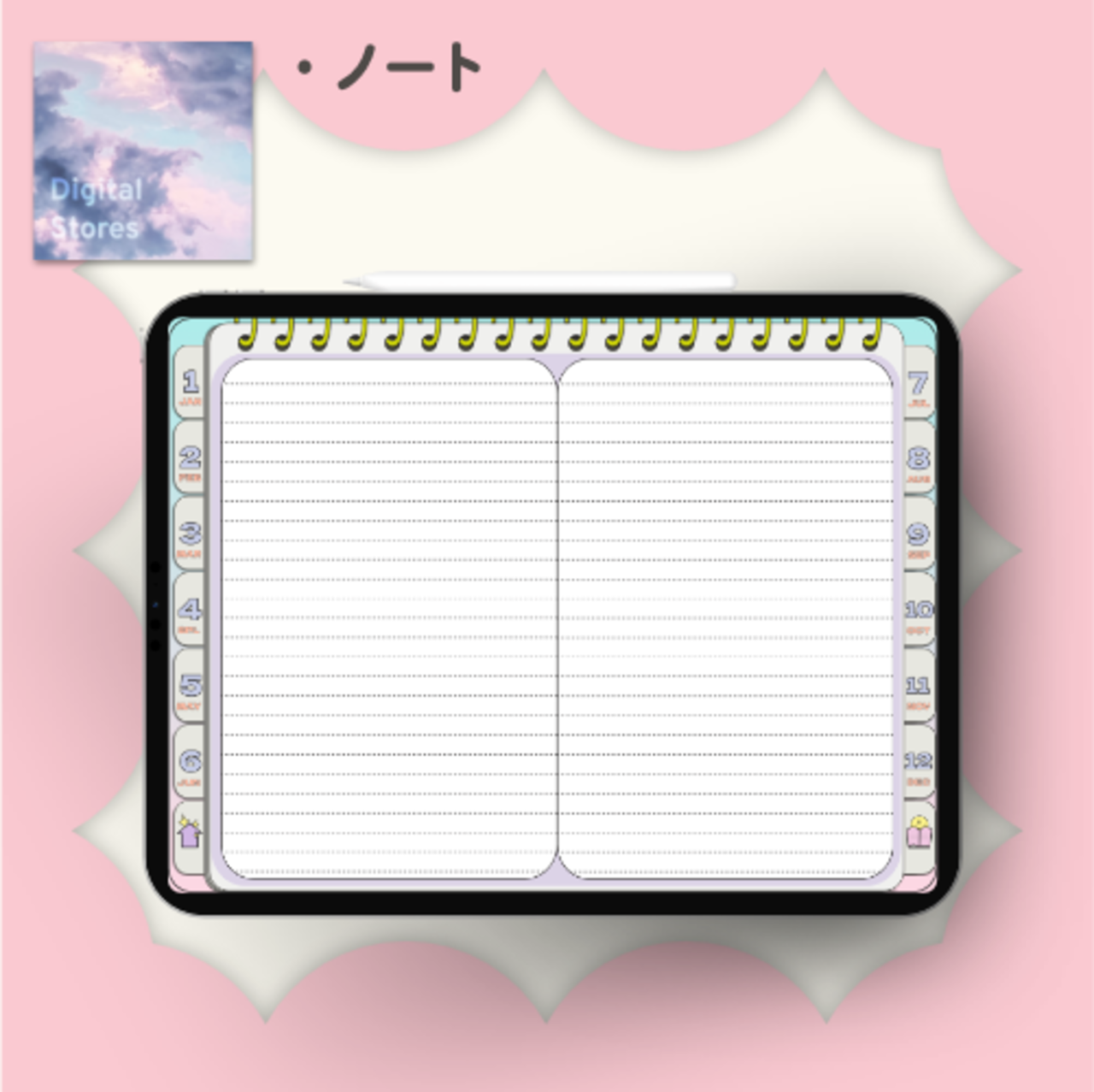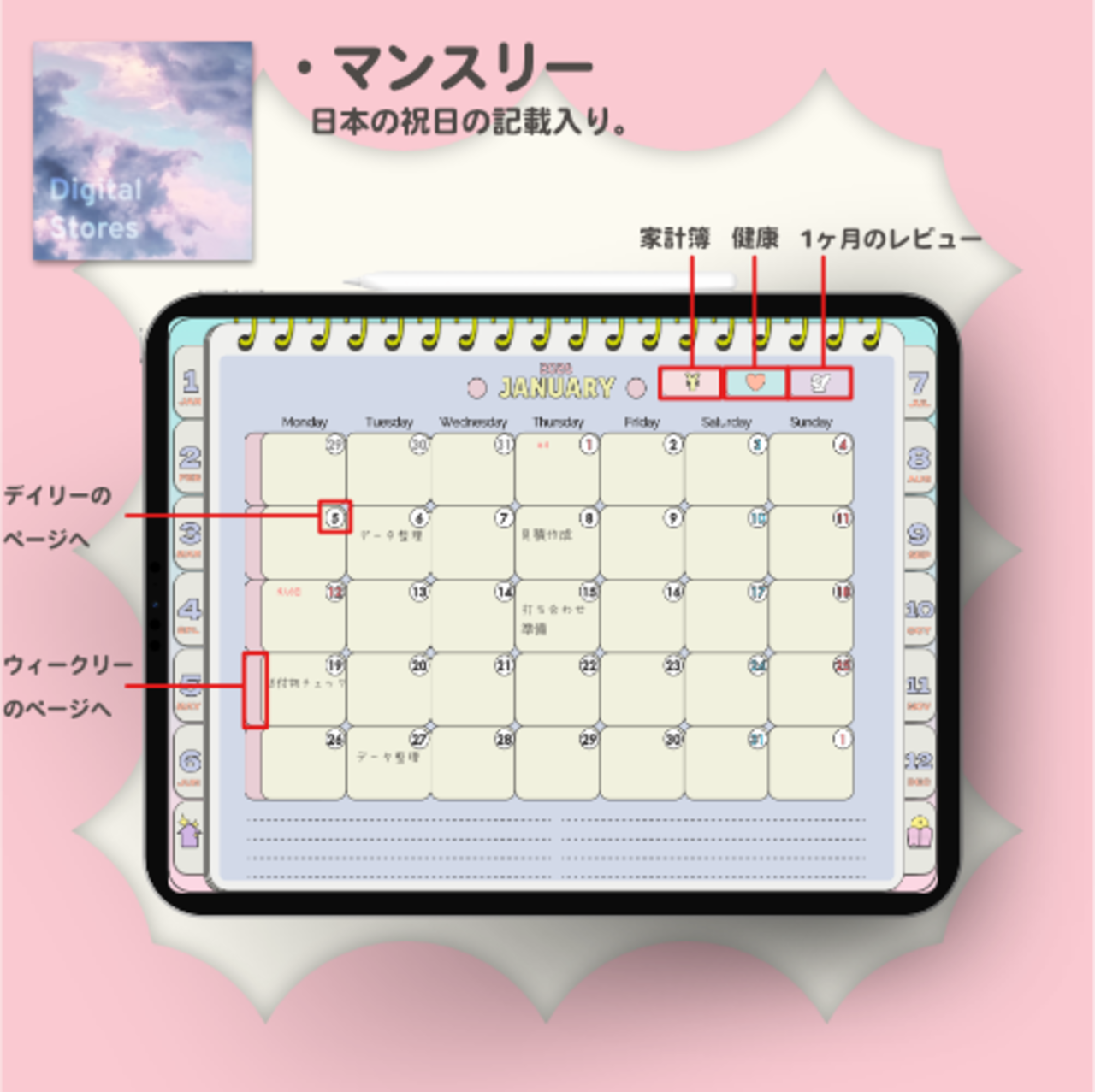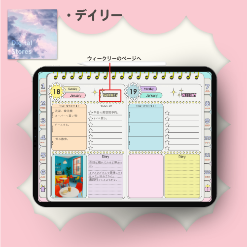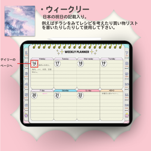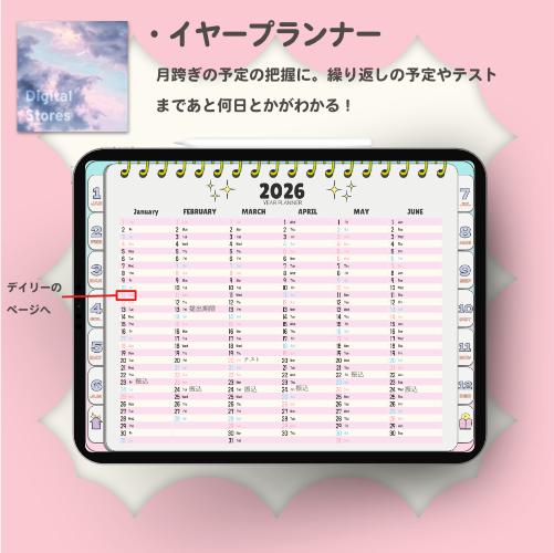 【2026年1月始まり】2026年デジタルプランナー|POPなデザイン!パステルカラーでかわいい!|マンスリー、ウィークリー、デイリー|日本の祝日の記載あり|iPad専用【月曜始まり】 | digitalstores